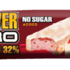 Proteinska bar pločica sa ukusom jagode prelivena belim prelivom. Bez dodatog šećera.